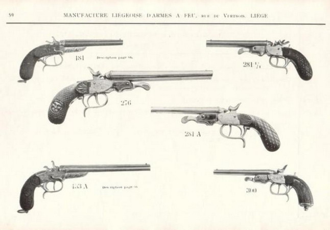 El intervalo de fabricación de estas pistolas está comprendido entre finales del siglo XIX y el primer tercio del XX. Casi todas se fabricaron en Bélgica y la mayoría iban destinadas al mercado sudamericano, pues en esos países gozaban de gran aceptación, sobre todo en Brasil, de ahí que se les conozca también con el apodo de "brasileñas".